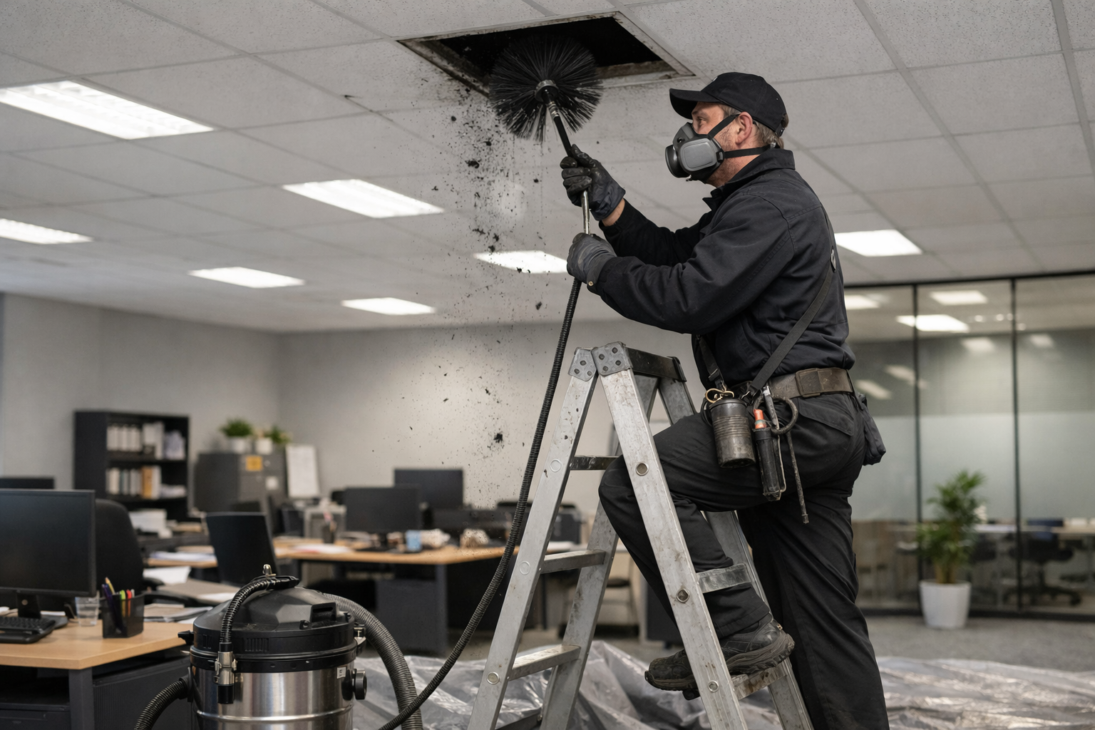 Lorsqu’un ramoneur professionnel intervient dans un bâtiment commercial ou industriel, il procède par étapes organisées. Tout commence par une inspection visuelle des conduits et des appareils de chauffage, suivie de la protection des espaces environnants grâce à des bâches adaptées.